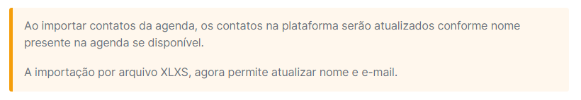 - Ao importar contatos da agenda, os contatos na plataforma serão atualizados conforme nome presente na agenda, se disponível.