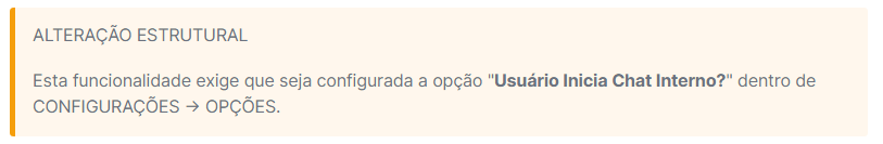 - Adicionada a opção de iniciar chat interno por usuários.