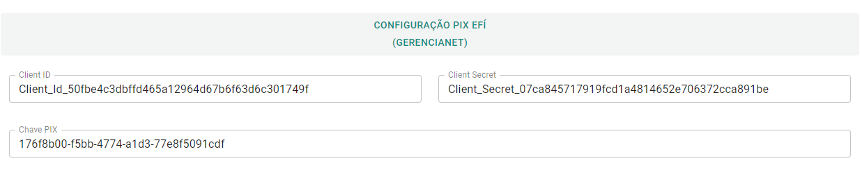 Preecnha as informações, com os dados obtidos em sua conta Efí.