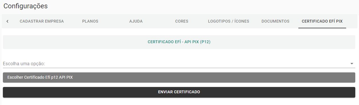Você deve enviar o Certificado Pix emitido na Efí para sua aplicação Whaticket Saas to Saas: