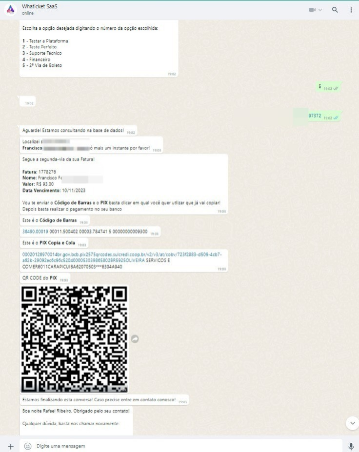 A partir deste momento, os usuários poderão solicitar segunda-via de boleto e desbloqueio em confiança diretamente do WhatsApp em seu Whaticket Saas Whitelabel!